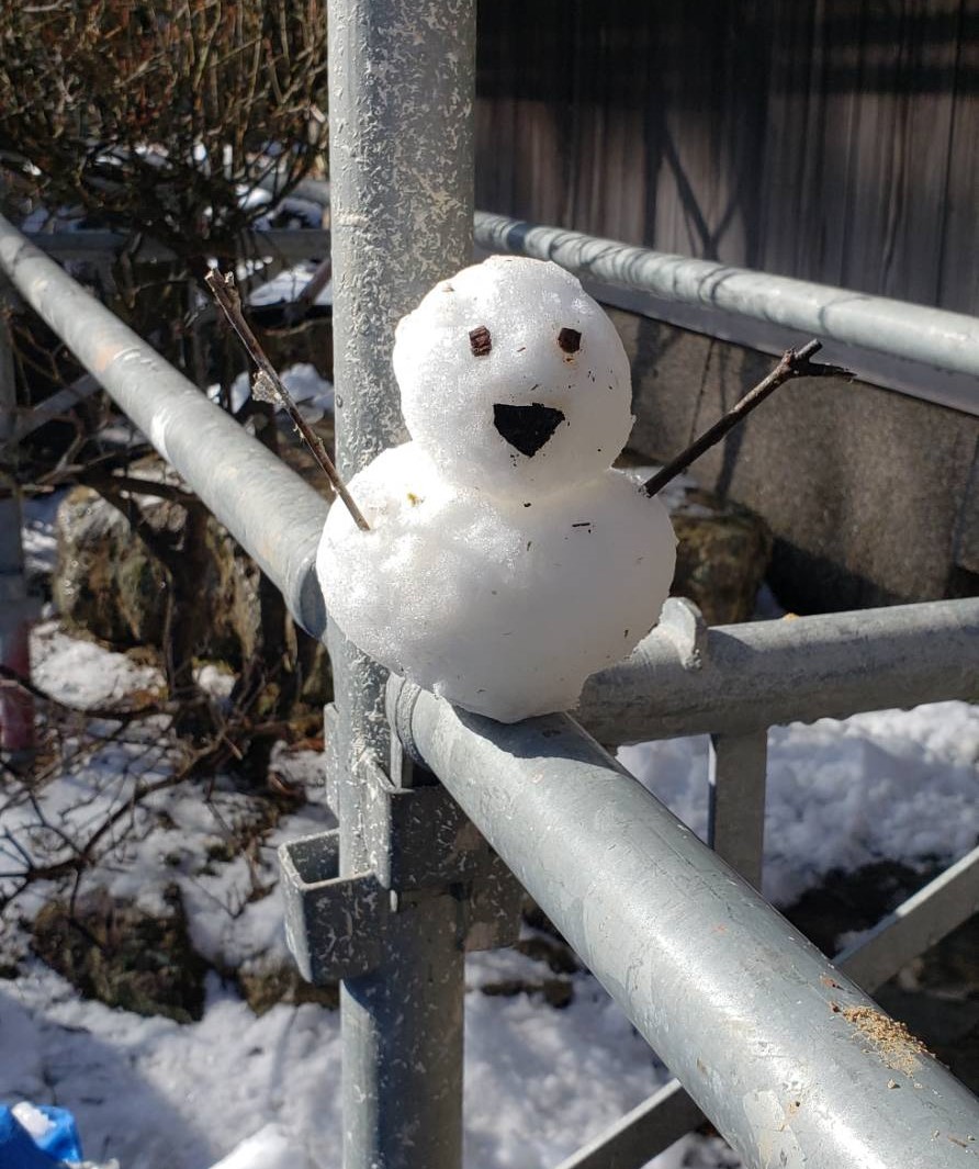 今月三田市では雪が降る日が何度かあり、現場の休憩時間、お庭に残っていた雪で作りました⛄