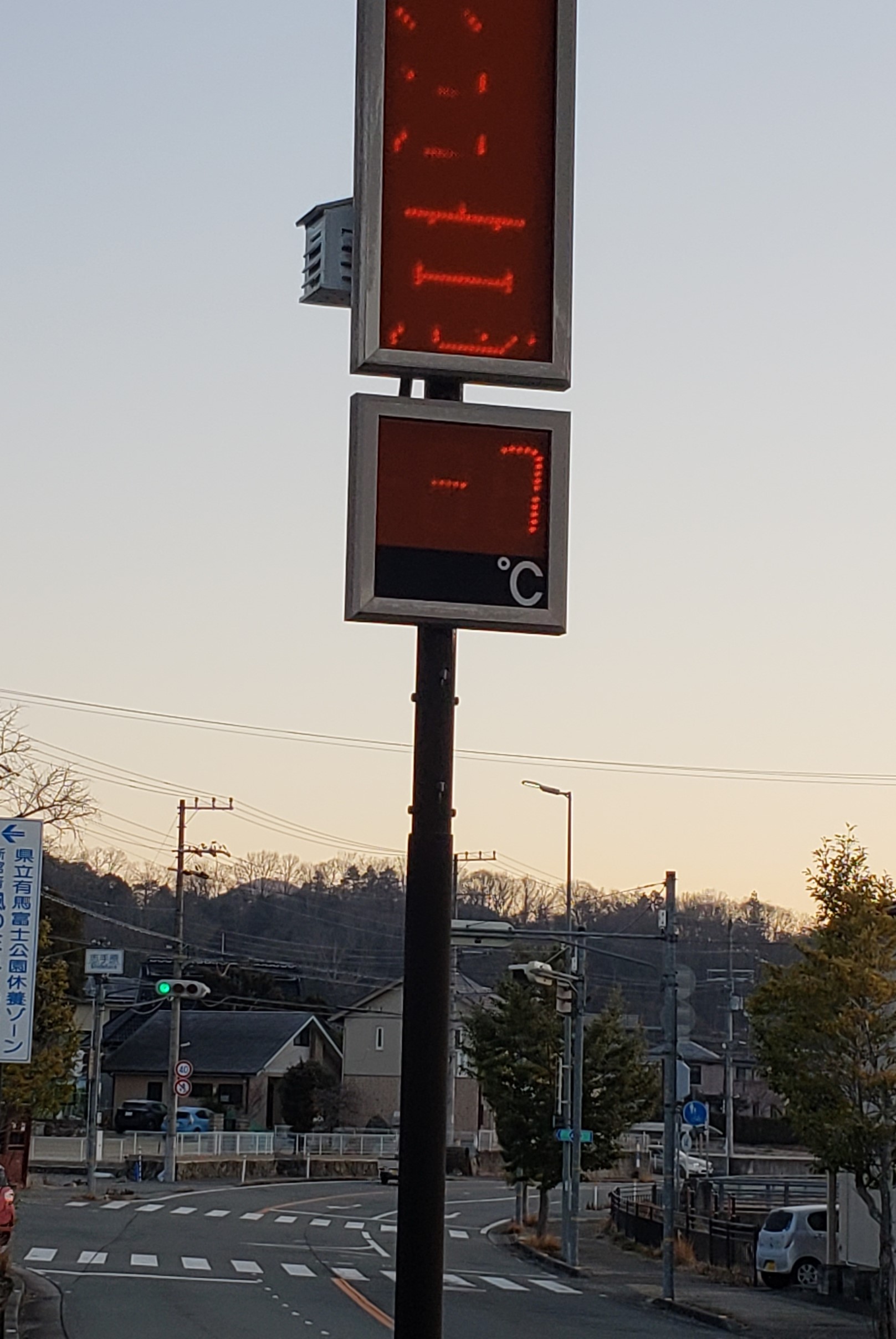 極度に冷え込んだ時は、弊社の倉庫が市内志手原というところにあるのですが、朝、倉庫に行く前に県道沿いの気温計を確認します。何年か前には-13℃というのを見ました!時々、宝塚市北部の西谷地区を通って宝塚市内現場へ行くのですが、その道沿いにも気温計があり、実は、そこは、三田よりもいつも1℃~2℃低いです。三田の隣、宝塚市や三木市の町中の現場へ着くと、3℃~6℃は朝の気温は高いです。現場のお施主様からよく「寒いでしょ(~_~;)」と言われるのですが、朝一番の三田市の冷え込みを感じてから行っているので、実は暖かく感じています(^_-)